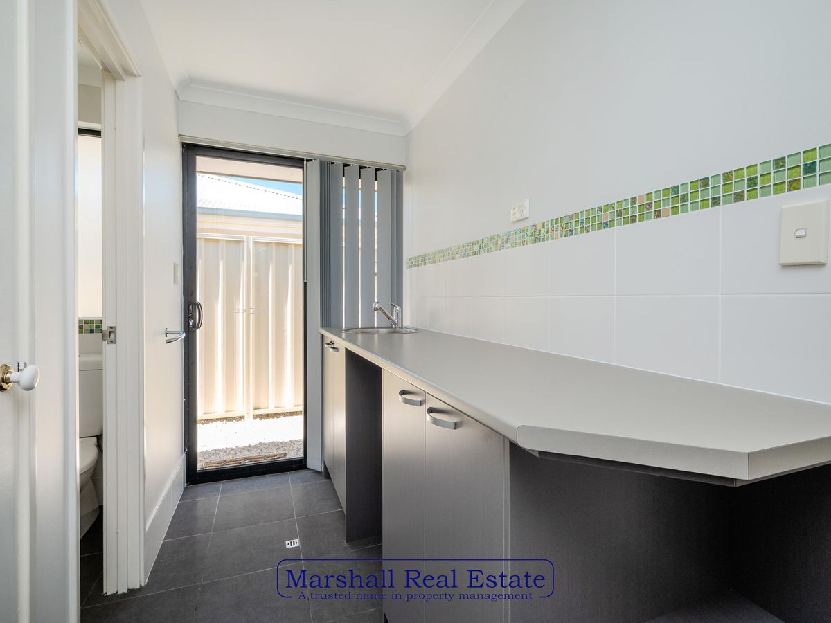 Separate laundry with cupboards and bench space